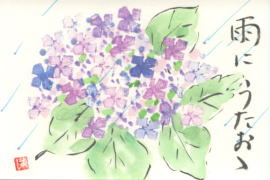 雨の季節を楽しみながら描いてくれた絵手紙ですね…