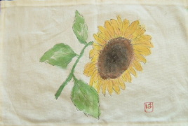 今月は布やうちわにいつもより大きく絵を描いて、生活の中で使えるものにして見ました。