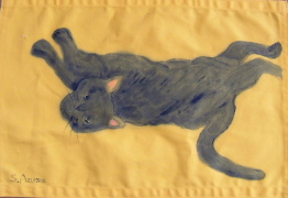 布に描いてみました。墨で描くと滲んでしまうので、ペンテルの『ソメール絵の具』と