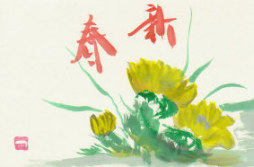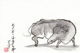 来年は丑年ですね。でも丑年にこだわらなくても新春らしい絵を添えて