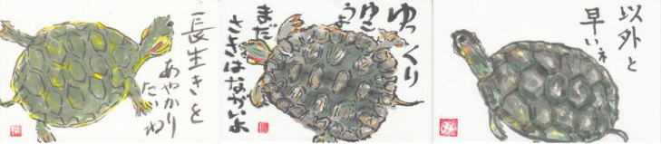 水の中を動き回る金魚やカメなどを描く。