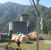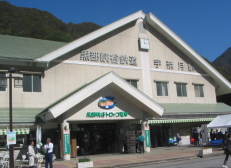 宇奈月駅前にあるアルプスの山小屋風建物。