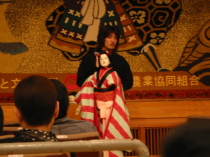 なっていて、一体の人形を三人の人形遣いが黒子を