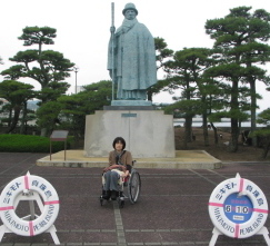 残念ながら何も見えない。鳥羽一郎と山川豊兄弟の歌碑の前で一枚