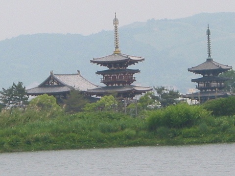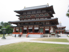 車椅子のため南大門の横から入り、五重塔・金堂を眺め回廊を通り抜け{【大講堂】へ、有名な薬師三尊像